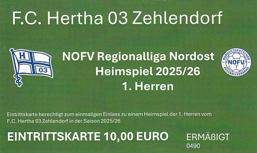 Regionalliga Nordost, 01.04.2026: Hertha 03 Zehlendorf - FCC 0:3 (0:1) Am 1. April ging es zum Nachholespiel in Westberlins noblen Süden. Unser letztes Gastspiel im Ernst-Reuter-Sportfeld lag bereits mehrere Jahrzehnte zurück (07.08.1994). Die Revanche für jenes klägliche 0:1 seinerzeit gelang vortrefflich.